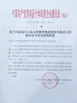 春暖花開,萬物復(fù)蘇之際,2017年大智黨建工作乘著春風(fēng)又添喜訊!03月07日,中共濟(jì)寧市任城區(qū)阜橋街道委員會(huì)正式批復(fù)同意成立中共濟(jì)南大智教育...