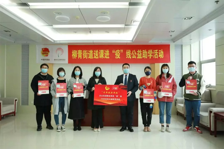 大智臨沂區(qū)域聯(lián)合共青團(tuán)蘭山區(qū)委開展26000元公益助學(xué)活動,為蘭山區(qū)柳青街道奮戰(zhàn)在抗疫一線的人員子女送上公益網(wǎng)課和學(xué)習(xí)資料。