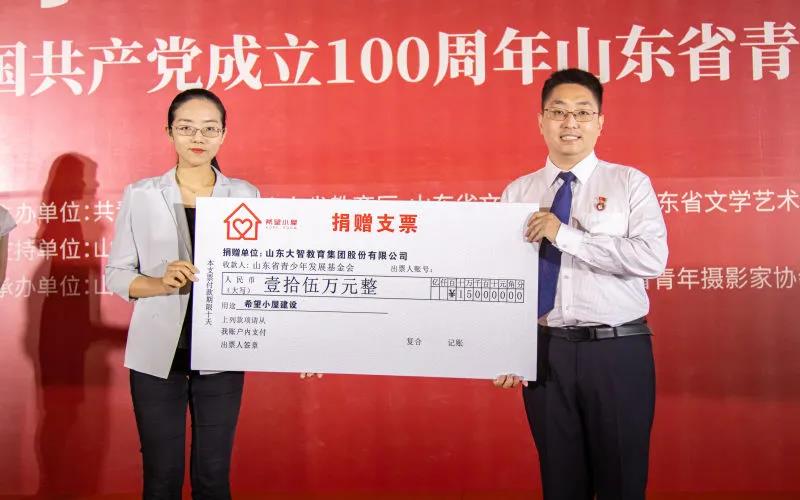 活動(dòng)現(xiàn)場(chǎng),大智教育集團(tuán)向山東省青年發(fā)展基金會(huì)捐款15萬(wàn)元,用于支持“希望小屋”建設(shè)。