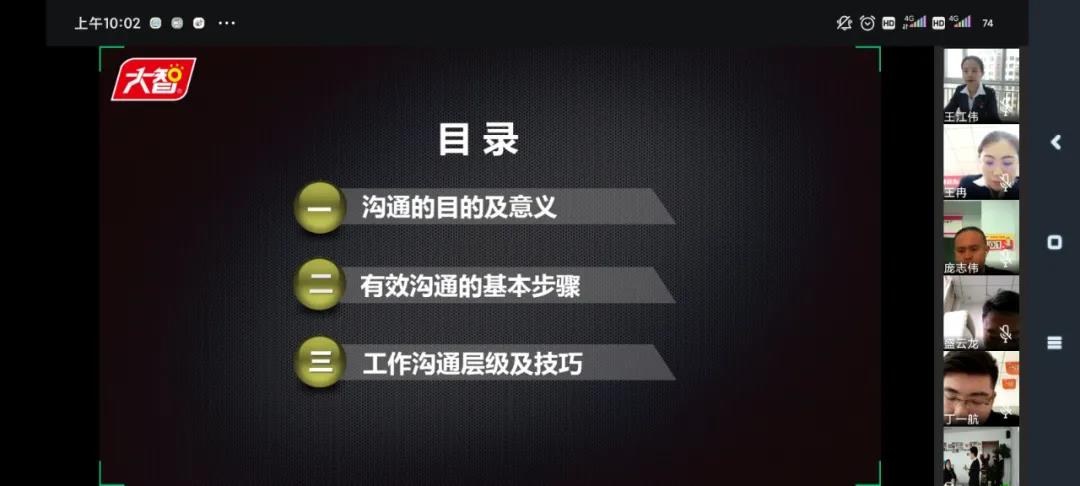 2月26日上午,大智教育集團(tuán)黨委書記王現(xiàn)芹為大智黨員們帶來(lái)“向陽(yáng)計(jì)劃”培訓(xùn)第二講精彩內(nèi)容分享——《管理就是溝通》。部分黨員現(xiàn)場(chǎng)參加培訓(xùn),其他各區(qū)域(公司)的黨員們通過(guò)視頻連線的方式參加培訓(xùn)。