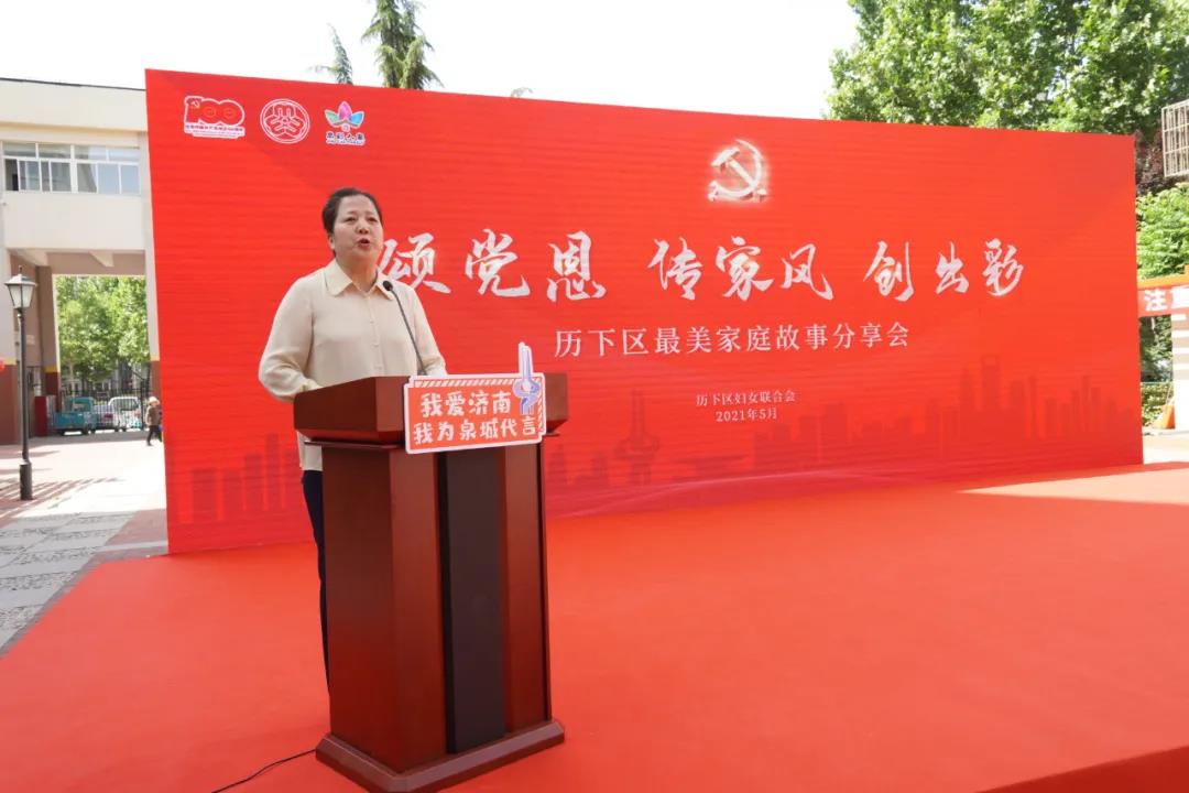 會上,歷下區(qū)婦聯(lián)主席蘇鳳清發(fā)表致辭。
