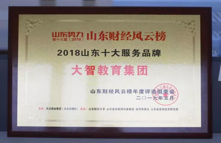 此前,大智已先后獲評(píng)“山東省著名商標(biāo)”“山東省消費(fèi)者滿意單位”“山東十佳教育品牌”“全國(guó)民辦學(xué)校守誠(chéng)信·重教學(xué)質(zhì)量雙保障示范單位”“中國(guó)教育行業(yè)成長(zhǎng)十強(qiáng)”“中國(guó)社會(huì)組織評(píng)估4A級(jí)單位”“中國(guó)品牌影響力教育集團(tuán)”等榮譽(yù),每一份榮譽(yù)都是對(duì)大智教學(xué)質(zhì)量的最好背書(shū)。