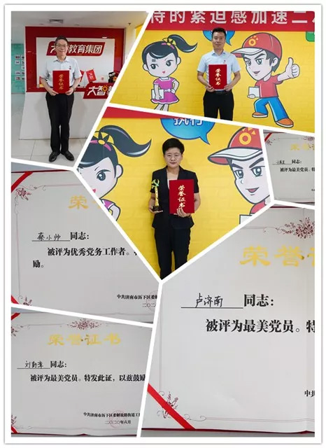 近日,在建黨99周年之際,濟(jì)南市歷下區(qū)解放路街道下發(fā)《解放路街道黨工委關(guān)于表揚(yáng)先進(jìn)單位和先進(jìn)個(gè)人的決定》,大智控股集團(tuán)小班黨支部被評(píng)為“過硬黨支部”,黨委書記王現(xiàn)芹被評(píng)為“身邊的榜樣”,黨委副書記蔡小帥榮獲“優(yōu)秀黨務(wù)工作者”,黨委委員劉勤章,小班黨支部書記楊愛彬,1對(duì)1黨支部書記盧濟(jì)南,講師第一黨支部書記蔣艾琳,第二黨支部書記張秋玲,黨員于展星榮獲“最美黨員”榮譽(yù)稱號(hào)。