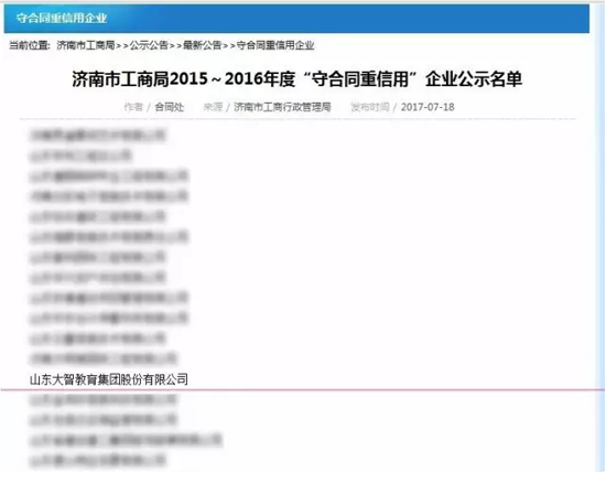日前,山東省濟南市工商行政管理局公布2015~2016年度“守合同 重信用”名單, 大智憑借良好的口碑與信譽, 喜獲“守合同重信用” 企業(yè)這...