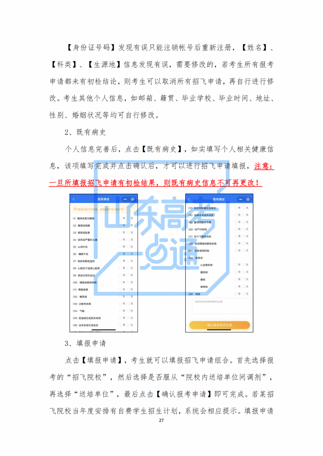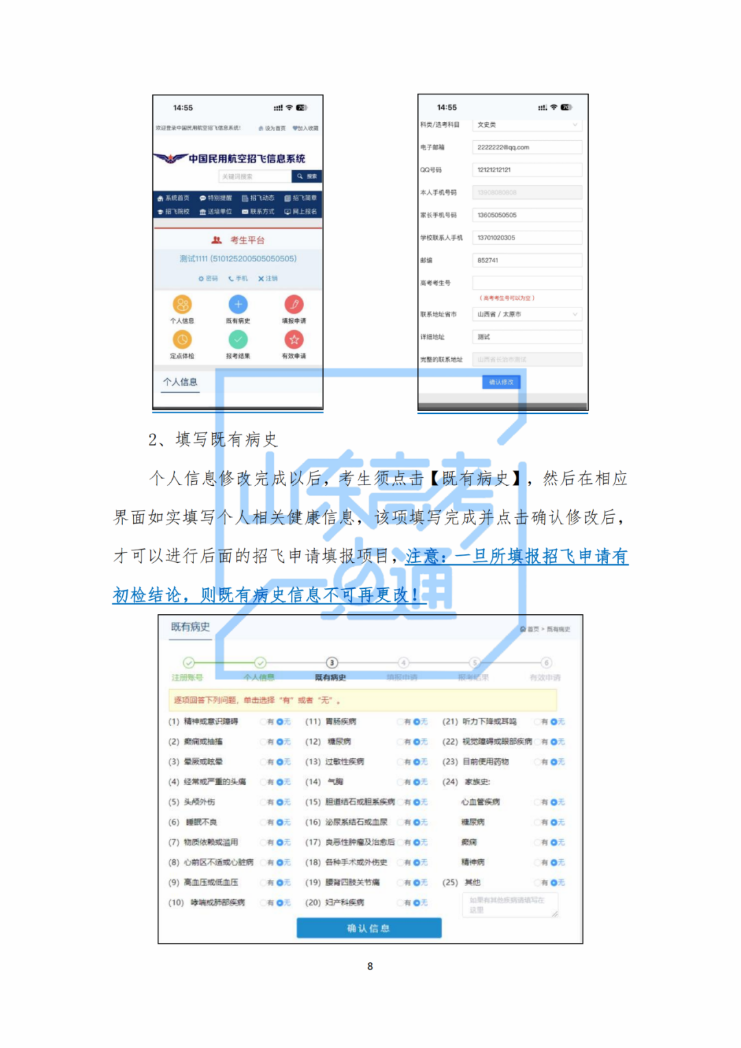 7、一定不要在申請(qǐng)組合體檢狀態(tài)為“在體檢”(即招飛系統(tǒng)上還未得出體檢結(jié)論)時(shí),去參加其他申請(qǐng)組合送培單位組織的體檢!