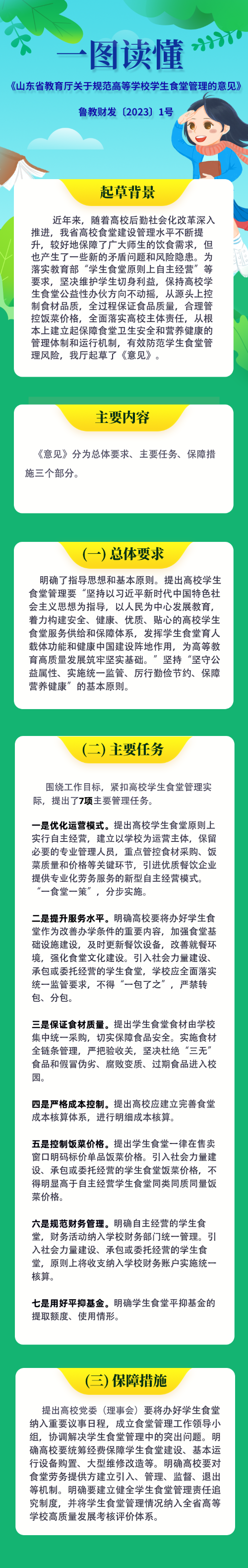 8月30日,《山東省教育廳關(guān)于規(guī)范高等學(xué)校學(xué)生食堂管理的意見(jiàn)》(魯教財(cái)發(fā)〔2023〕1號(hào),以下簡(jiǎn)稱(chēng)《意見(jiàn)》)正式印發(fā),現(xiàn)解讀如下。一、起草背...