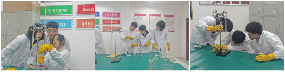 實(shí)驗(yàn)通過(guò)三人合作互助形式展開(kāi),由學(xué)科導(dǎo)師講解所做實(shí)驗(yàn)在高考中的重要地位以及考查形式,學(xué)生動(dòng)手實(shí)驗(yàn)操作,學(xué)科導(dǎo)師指導(dǎo)并規(guī)范其實(shí)驗(yàn)操作步驟。學(xué)員不僅在宏觀層面上對(duì)化學(xué)實(shí)驗(yàn)有整體認(rèn)識(shí),同時(shí)在中觀層面能夠明確實(shí)驗(yàn)操作步驟,在微觀層面上細(xì)化實(shí)驗(yàn)規(guī)范。學(xué)生們?nèi)硇耐度耄诓僮髦欣斫鈱?shí)驗(yàn)理論,在實(shí)驗(yàn)中梳理規(guī)范流程,在創(chuàng)新中剖析實(shí)驗(yàn)本質(zhì)。