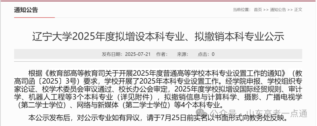 近日,遼寧大學、福建師范大學、江西農業(yè)大學、西安郵電大學相繼發(fā)布關于2025年度調整本科專業(yè)情況的公示。遼寧大學7月21日,遼寧大學發(fā)布《2...