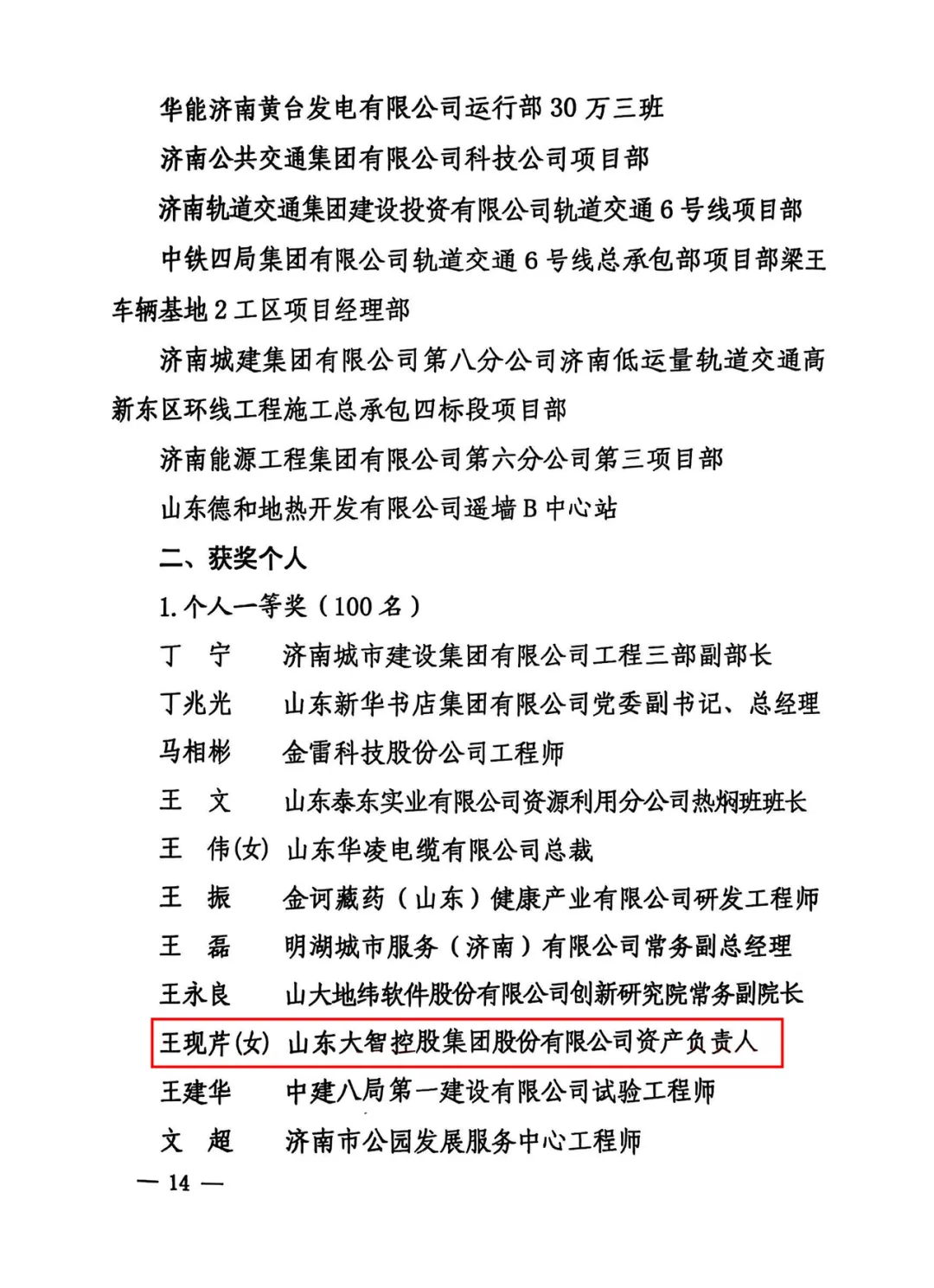 王現(xiàn)芹榮獲濟南市2024年“項目深化年”創(chuàng)新創(chuàng)優(yōu)勞動競賽一等獎