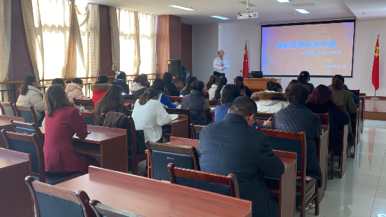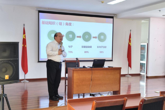 培訓(xùn)中,張朋從理論和實(shí)踐兩個(gè)層面對(duì)威海四中“低、慢、小、精”的課改理念和“三個(gè)中心”課改原則進(jìn)行深刻剖析:理論層面從基礎(chǔ)知識(shí)(鏈)角度、基礎(chǔ)題型(鏈)角度、基本能力(鏈)角度論證了“低、慢、小、精”課改理念的合理性和科學(xué)性;實(shí)踐層面基于威海四中學(xué)情和自身經(jīng)驗(yàn),從“基礎(chǔ)知識(shí)認(rèn)知弱、基本題型缺定法、基本能力憑感覺、語言態(tài)度糾偏少、寫作從無范文感”五大維度論證學(xué)?!皞湔n以學(xué)生為中心、上課以活動(dòng)為中心、作業(yè)以雙基為中心”課改實(shí)踐原則的合理性和科學(xué)性。