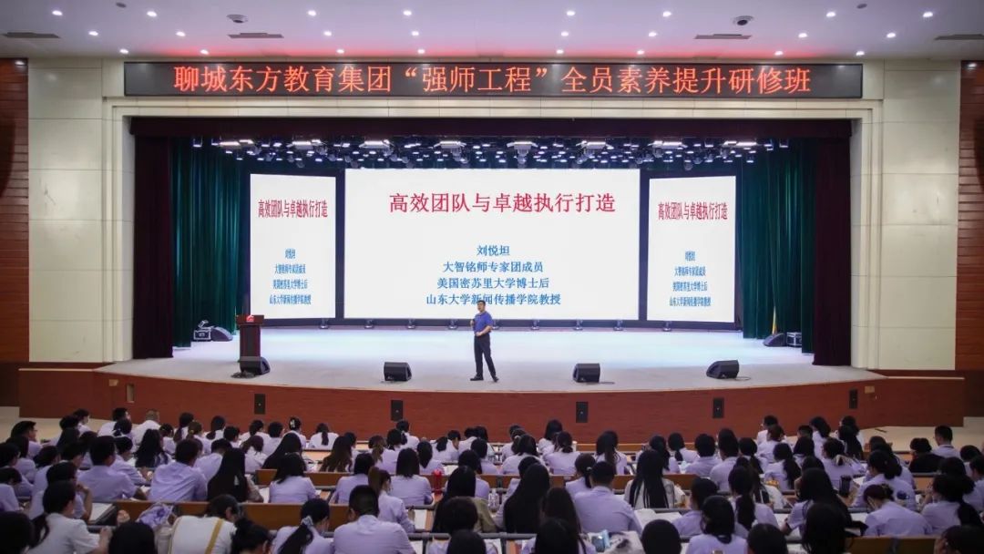 7月11日,聊城市東方教育集團“強師工程”之全員素養(yǎng)提升研修班開班典禮在聊城東方教育集團報告廳舉行。聊城市東方教育集團董事長趙以濤,聊城東方教育集團副董事長、行政校長馬成虎,聊城東方教育集團副董事長、業(yè)務(wù)校長、東方中學(xué)校長、集團教研室主任王曉虎,聊城東方教育集團副董事長、辦公室主任付博,聊城東方教育集團副董事長、人力資源部主任、黨建辦公室主任劉佳,山東大學(xué)文學(xué)與新聞傳播學(xué)院教授、博士生導(dǎo)師、中國最勵志教授劉悅坦,大智銘師負責(zé)人張朋,大智銘師項目部負責(zé)人徐西路等出席開班典禮,大智銘師教學(xué)部黃遠福主持典禮。