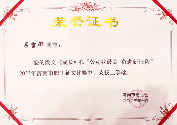 祝賀大智2位家人在濟南市職工征文比賽中榮獲獎項