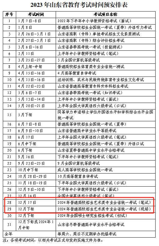 2024山東省藝術統(tǒng)考將于12月17日開考?。▋?nèi)附藝考政策及考試說明)