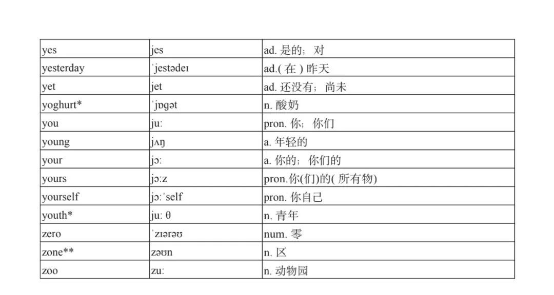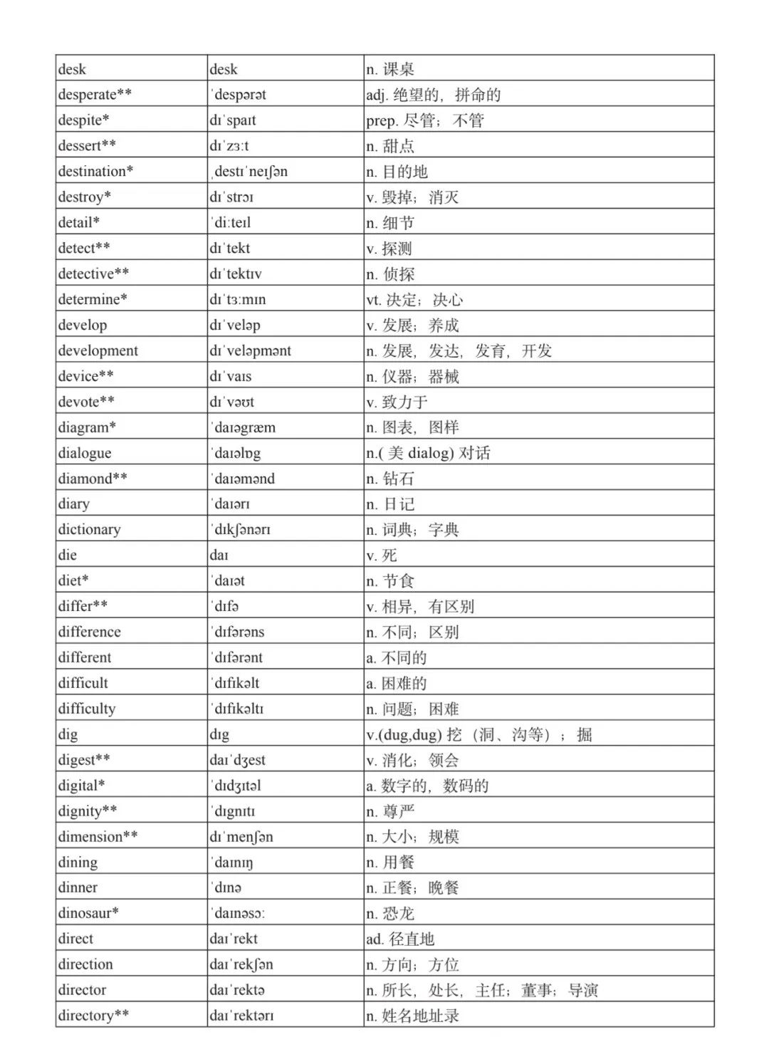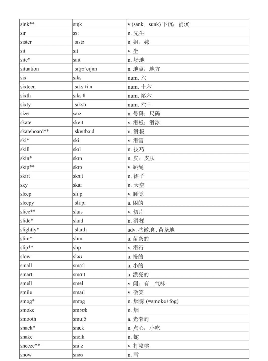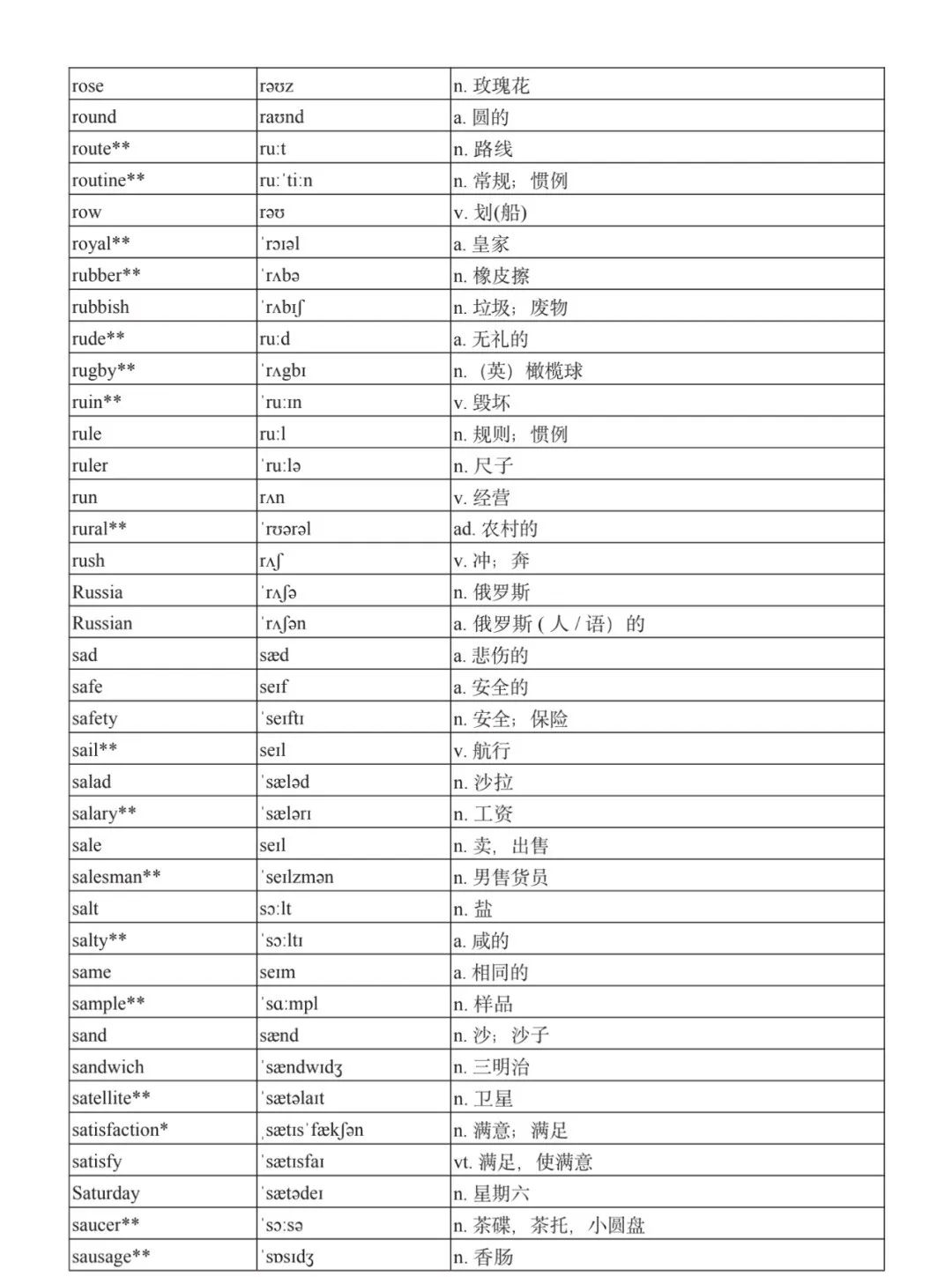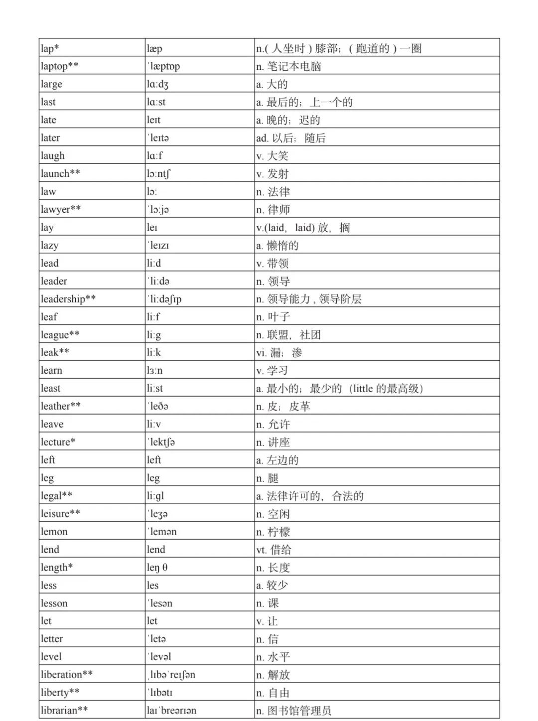 本詞匯表共收 3000 個(gè)單詞,含義務(wù)教育階段要求掌握的 1500 個(gè)單詞。高中英語必修課程應(yīng)學(xué)習(xí)和掌握 500 個(gè)單詞(表中加有一個(gè) * 號(hào)),累計(jì)達(dá) 2000。選擇性必修課程應(yīng)學(xué)習(xí)和掌握 1000 個(gè)單詞(表中加有兩個(gè) *號(hào)),累計(jì)達(dá) 3000。各地可根據(jù)實(shí)際情況在本詞匯表所收詞的基礎(chǔ)上,再選擇增加 200 個(gè)單詞。