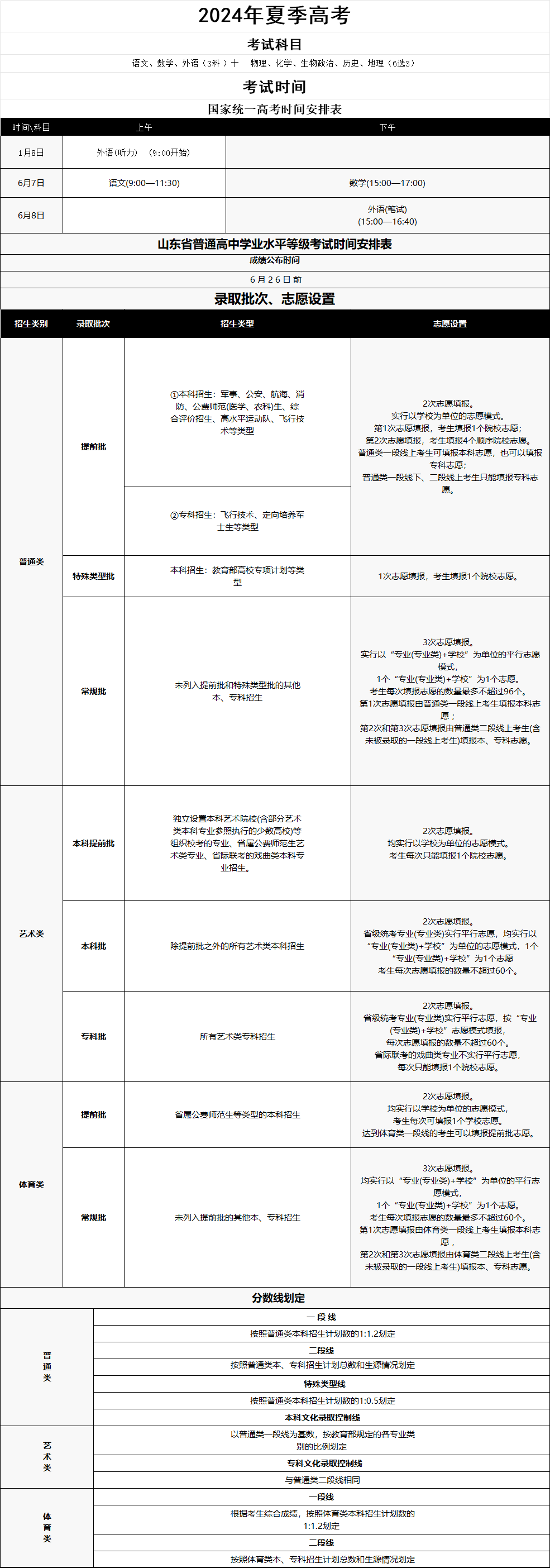 1.夏季高考各科目考試時間是如何安排的?答:夏季高考分為全國統(tǒng)一考試和普通高中學業(yè)水平等級考試兩部分??荚嚂r間安排如下:(1)全國統(tǒng)一考試全...