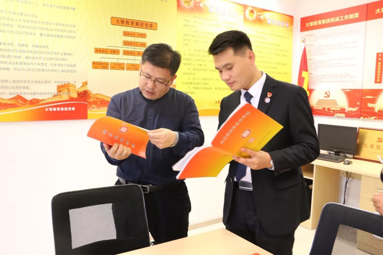考察中,朱玉峰一行參觀了大智控股集團(tuán)總部,雙方圍繞著黨建工作、團(tuán)隊(duì)建設(shè)、教研師訓(xùn)、教學(xué)服務(wù)等主題展開了深入的交流和探討。