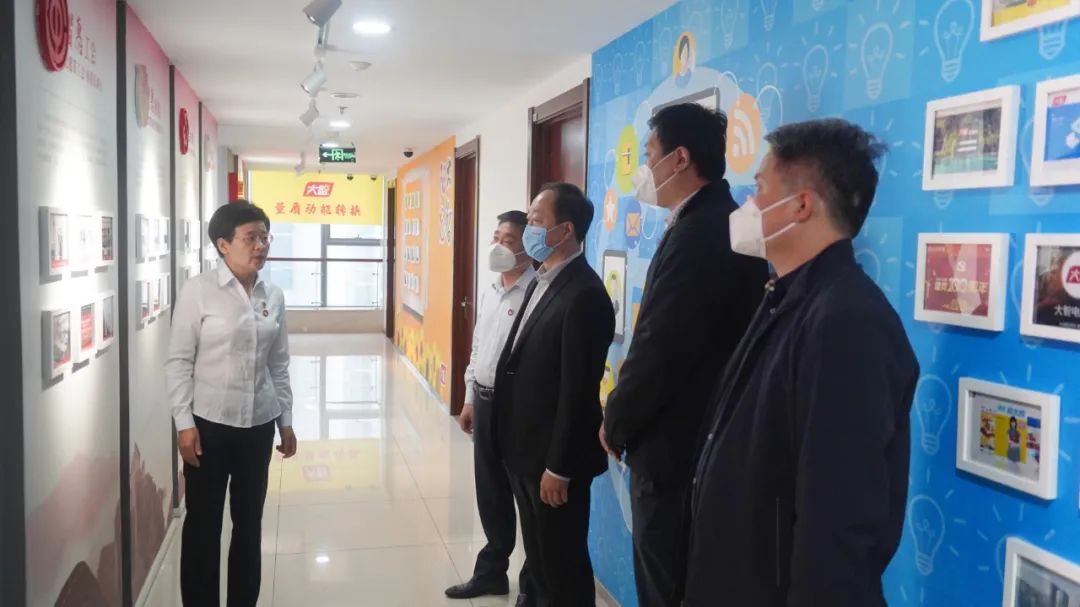 首先,王現(xiàn)芹帶領(lǐng)大家參觀了黨建長廊,詳細(xì)介紹了大智組織架構(gòu)、企業(yè)文化等相關(guān)情況,以及“智惠黨建一三九”黨建工作模式,黨建引領(lǐng)下的“一帶一促”群團(tuán)建設(shè)理念和“智惠+”群團(tuán)建設(shè)模式。