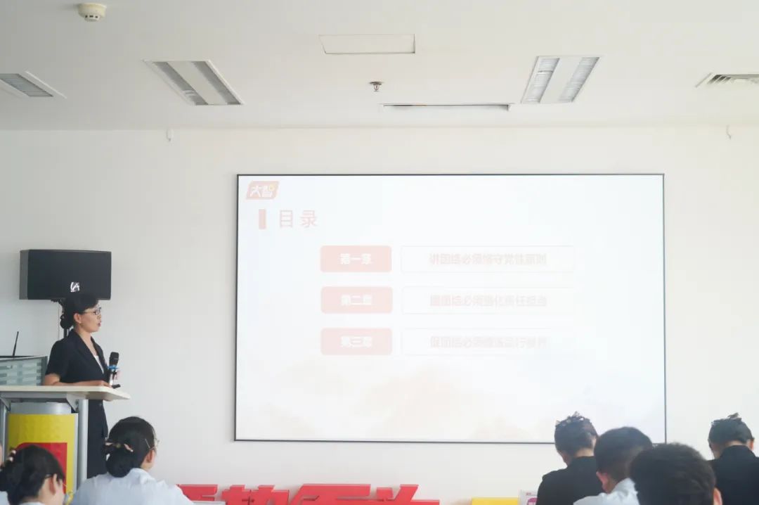 大智控股集團(tuán)黨委委員王艷艷為黨員們帶來《團(tuán)結(jié)一致干事業(yè)》主題黨課,號召大家牢記使命,勇于擔(dān)當(dāng),在團(tuán)結(jié)奮進(jìn)中開創(chuàng)轉(zhuǎn)型新局面,為事業(yè)發(fā)展貢獻(xiàn)崗位價值!