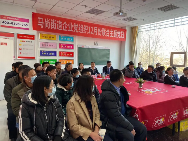 為扎實推進黨建工作,進一步增強黨組織凝聚力和黨員責任感。12月25日,馬尚街道企業(yè)黨組織12月份聯(lián)合主題黨日在大智淄博區(qū)域張店分校成功舉辦。