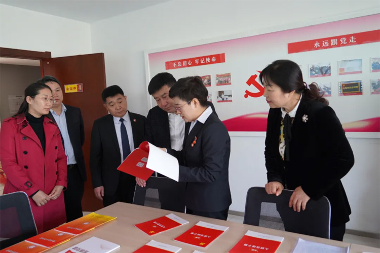 隨后,王現(xiàn)芹帶領(lǐng)大家參觀了黨員活動(dòng)室、大智黨校,并翻閱了大智黨建相關(guān)資料。在參觀過(guò)程中,武毅對(duì)大智在黨建和企業(yè)發(fā)展等方面給予了積極肯定和高度評(píng)價(jià)。