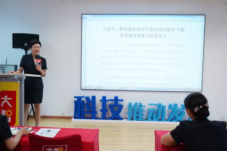 隨后,黨員們集體學(xué)習(xí)了大智控股集團(tuán)創(chuàng)始人、董事長張維東對(duì)于大智2020-2021財(cái)年發(fā)展主題詞“科技推動(dòng)發(fā)展”闡釋。