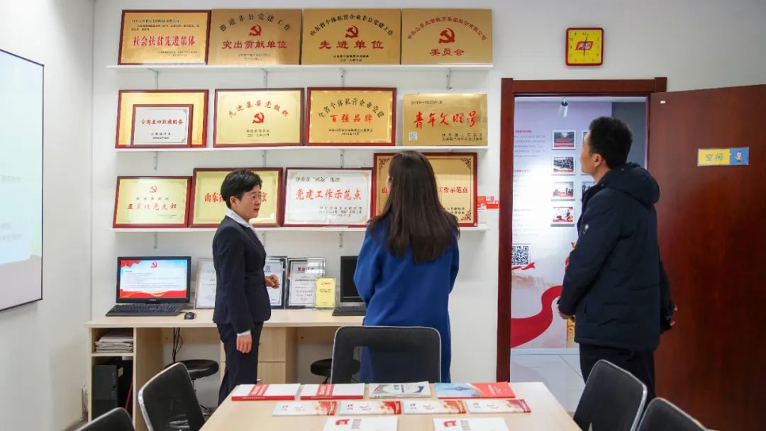 王現(xiàn)芹帶領大家參觀了黨建長廊,詳細介紹了大智組織架構、企業(yè)文化等相關情況,以及“智惠黨建一三九”黨建工作模式,黨建引領下的“一帶一促”群團建設理念和“智惠+”群團建設模式。大家對大智的黨建工作給予了高度評價。