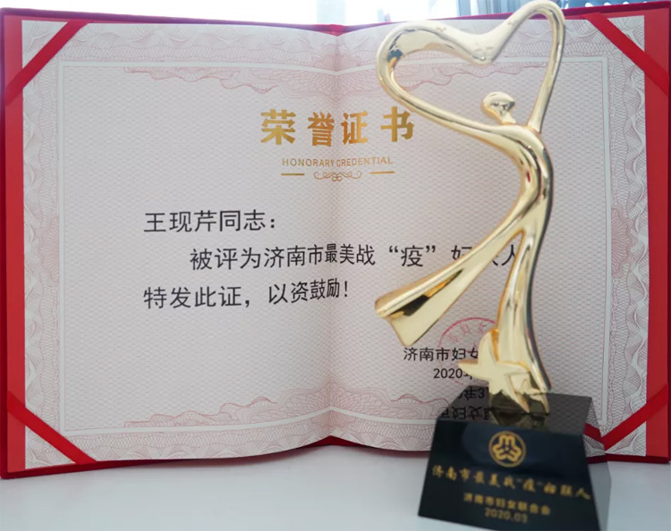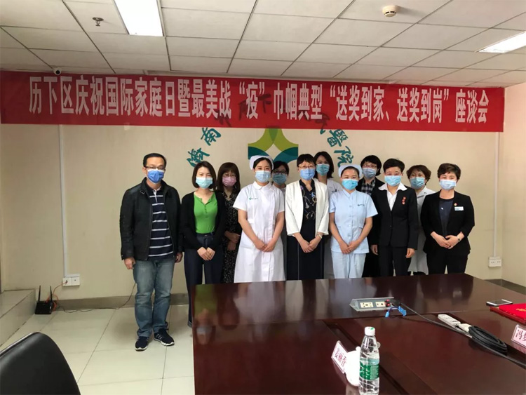 05月13日,濟(jì)南市歷下區(qū)慶祝國(guó)際家庭日暨最美戰(zhàn)“疫”巾幗典型“送獎(jiǎng)到家、送獎(jiǎng)到崗”座談會(huì)在歷下區(qū)人民醫(yī)院召開。歷下區(qū)委副書記尹紅梅,歷下區(qū)婦聯(lián)黨組書記、主席李健及獲獎(jiǎng)代表參會(huì)。會(huì)上,尹紅梅為大智控股集團(tuán)黨委書記、婦聯(lián)主席王現(xiàn)芹頒發(fā)了市區(qū)兩級(jí)“最美戰(zhàn)‘疫’婦聯(lián)人”榮譽(yù)獎(jiǎng)杯和證書。