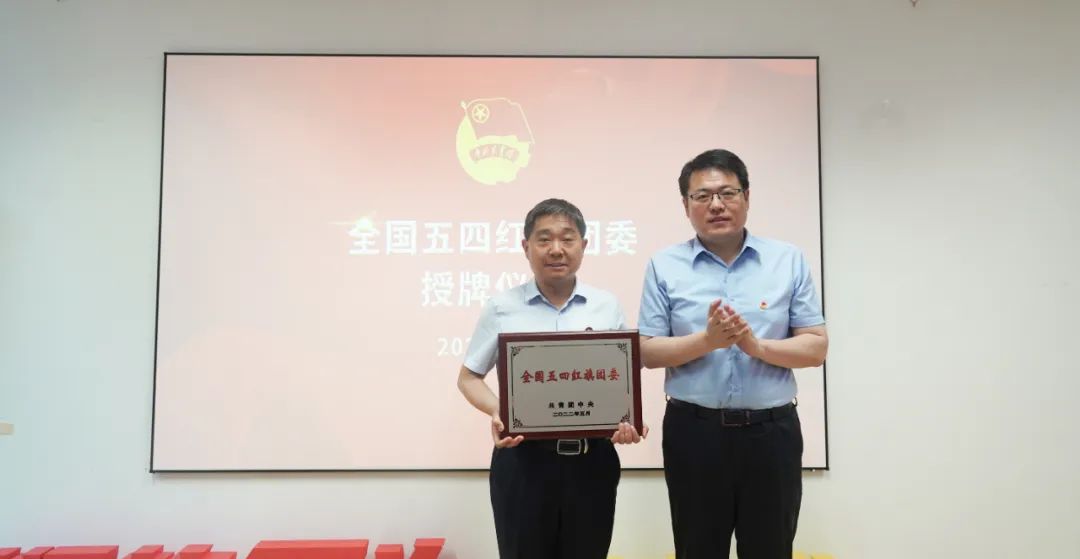 團(tuán)省委副書記張守珩為大智控股集團(tuán)團(tuán)委頒發(fā)“全國(guó)五四紅旗團(tuán)委”獎(jiǎng)牌。