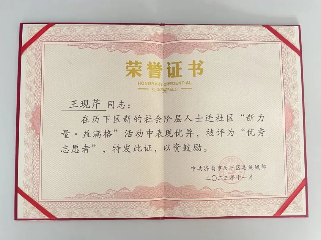 大智王現(xiàn)芹在“新力量?益滿格”活動中榮獲“優(yōu)秀志愿者”稱號